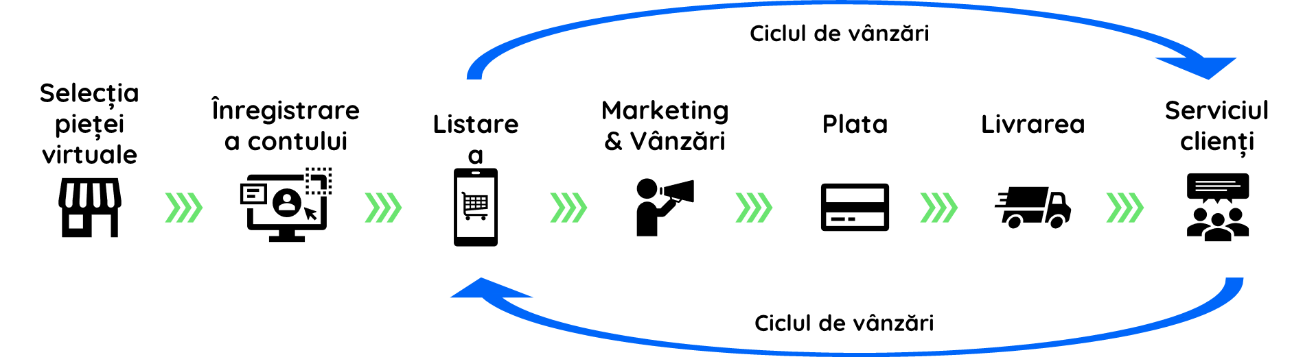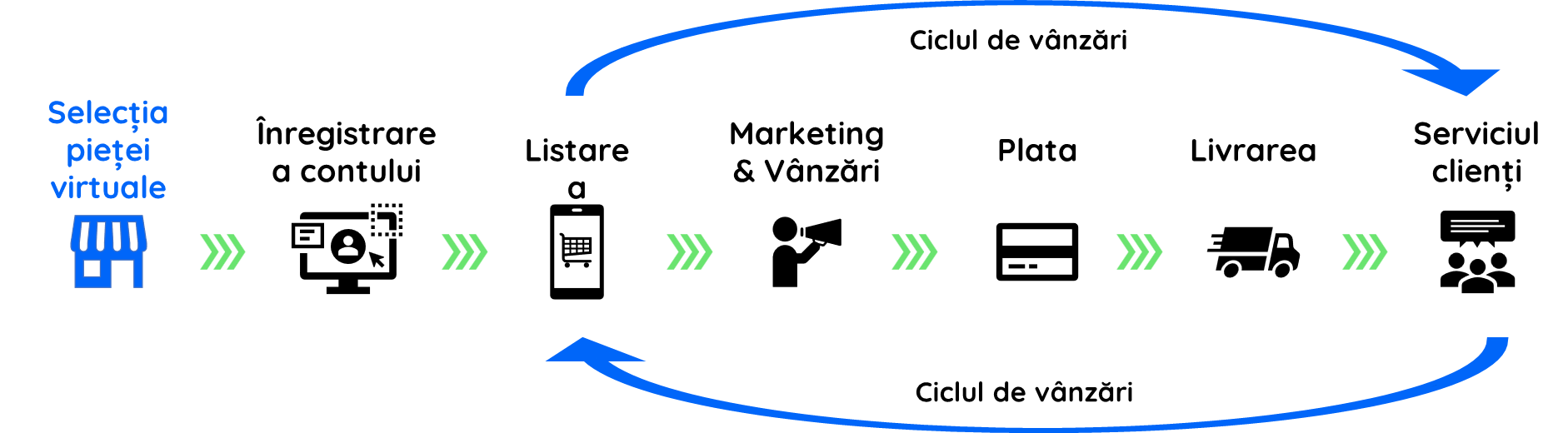 Bine ați venit într-o călătorie fascinantă în lumea comerțului electronic, unde veți descoperi cheile succesului pentru a vinde produsele dvs. pe cele mai importante piețe de comerț electronic din Uniunea Europeană. În cadrul acestui curs vom începe un parcurs pentru a afla semnificația comerțului electronic, ce piețe sunt potrivite pentru dvs., cum să înregistrați un cont pe o piață virtuală și cum funcționează ciclul de vânzări online. De-a lungul acestui curs, amintiți-vă de aceste repere esențiale: