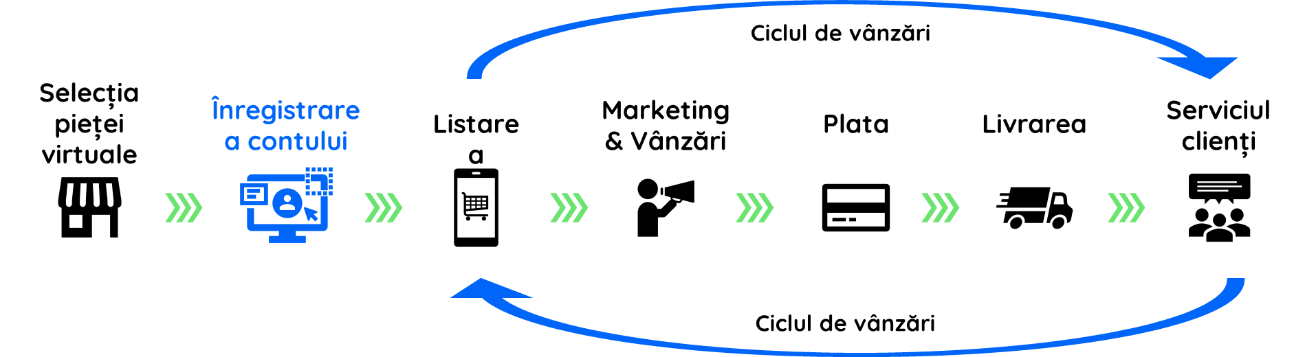 (Timp estimativ: 50 min) Acum că aveți deja o idee ce piață este cea mai potrivită pentru afacerea dvs., haideți să explorăm elementele de bază ale înregistrării și operării pe Amazon și eBay și eMAG. Vom începe cu prima sarcină – înregistrarea și configurarea contului. Înțelegerea funcționalităților noii platforme poate părea un pic descurajantă, dar vă vom ghida pas cu pas! Ce trebuie să știți despre regulile de înregistrare pe o anumită piață, cum să alegeți și să setați sistemul de plată, la ce taxe să vă așteptați și cum să livrați bunurile dvs. – acest modul vă va răspunde la toate aceste întrebări și la multe altele. Până la sfârșitul acestui modul, veți avea încredere în aspectele cheie de operare pe o platformă la alegerea dvs. și veți descoperi câteva sfaturi cum să reușiți.